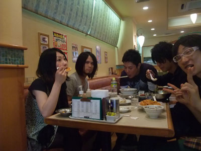 で,無事ライブも終わり(ぇー)一同打ち上げへ・・・。