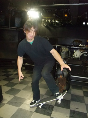 ライブハウスに一番乗り記念(奥にはPAの隆平)。