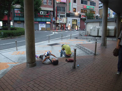 リハ後のアートハウスは謎のスケボー大会へ。